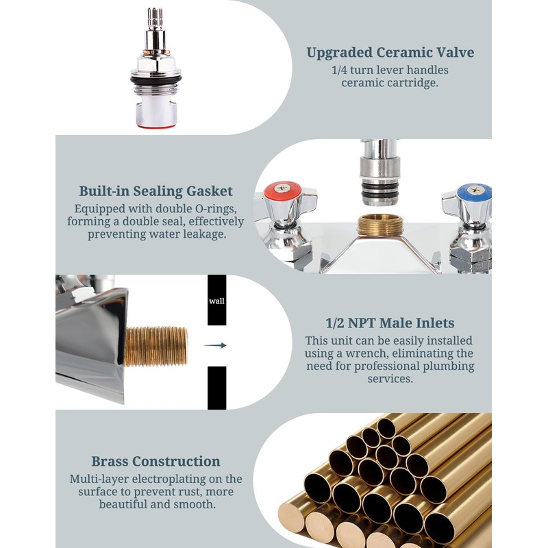- Easy to Install: Designed with a standard 4-inch center for seamless installation, our faucet features dual lever handles with hot and cold markings for easy temperature and flow control. This versatile design makes it a perfect fit for any commercial setting.