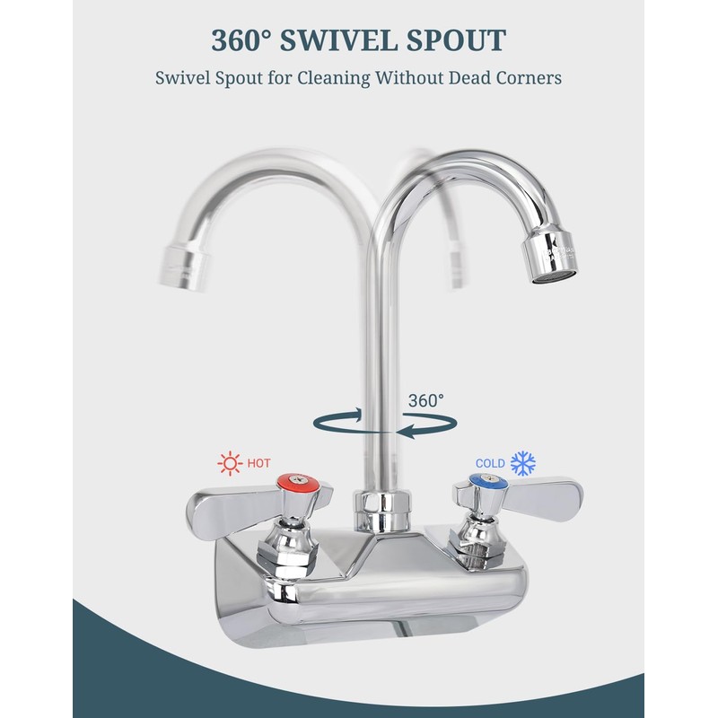 - Commercial Kitchen Faucet: The 3-1/2" gooseneck spout provides ample space for cleaning various utensils, and the 360 ° rotation allows water to easily reach every corner of the sink. Suitable for various sink setups such as stainless steel, ceramic, or utility sinks.