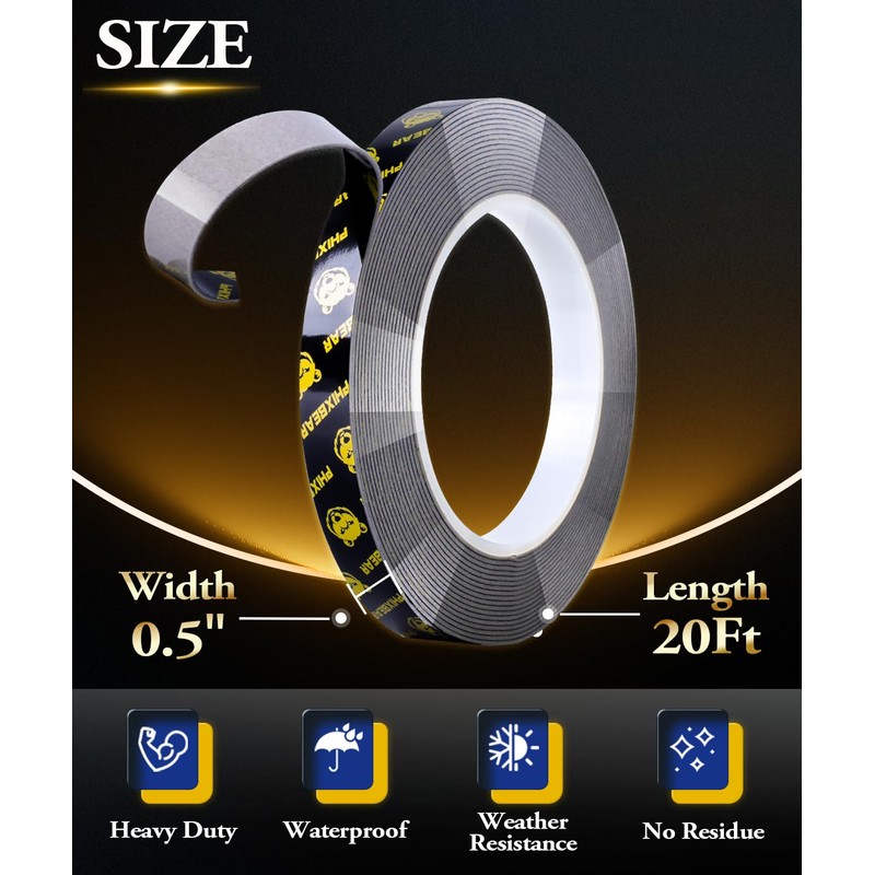 PHIXBEAR High Temperature Heavy Duty Double Sided Tape Resistant, 20 Ft X 0.5In, Strong Adhesion Waterproof Mounting Tape for Multi-Purpose Automotive Parts, LED Strip Ligh, Home, Office