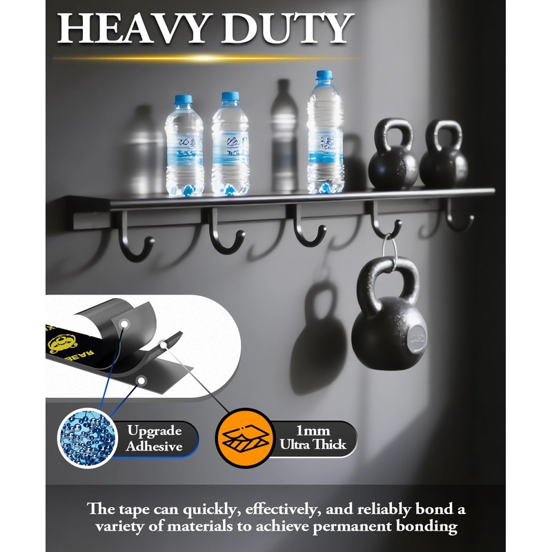 - 【Easy Removal & No Residue】Heavy-duty removable mounting tape is made from high-quality acrylic materials, which are highly elastic and durable. It can be easily removed or repositioned without leaving stains or sticky residues.