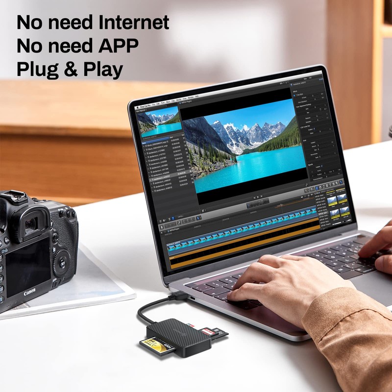 • Plug and Play: This memory card reader does not need to download app, plug and play. You can quickly transfer files from your memory card to your device, freeing up storage space anytime, anywhere. Capture important moments and share them immediately.
