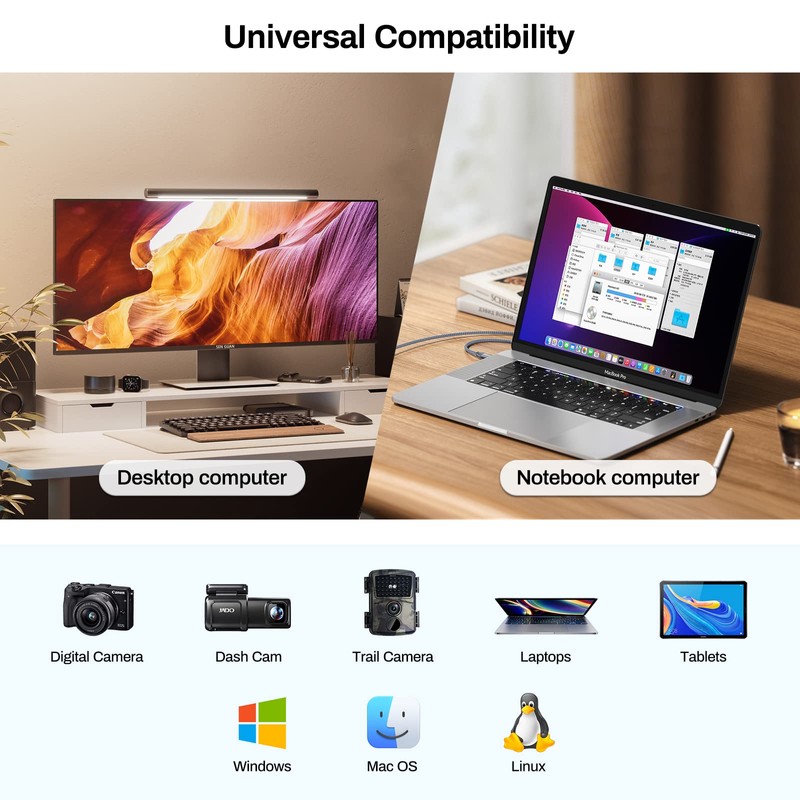 Compatible with Windows, Linux etc; Read/write memory cards on many other USB-A devices