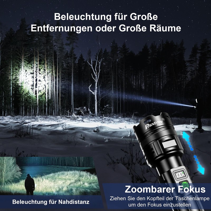 - [ Große Reichweite - 1500 Meter & Einstellbarer Fokus ] Die PH2403 LED Taschenlampen usb aufladbar bestehen aus verbesserter PH-L330 LED, die die Eigenschaften von hoher Konzentration und ultra langer Reichweite hat, können Sie den Fokus von schmal bis breit einstellen. Es ist ein hochkonzentrierter Kreisstrahl, er kann als Strahler verwendet werden, um Objekte bis zu 1500 meter entfernt zu beleuchten, auch wenn es Nebeltag oder Regentag ist. Es ist ideal für Camping, Wandern, Nachtwandern ...