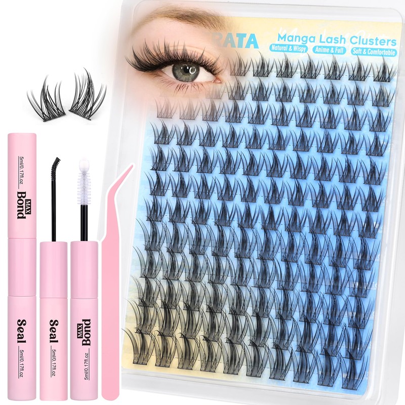 - All-Day Hold & Resuable Lashes Kit: The included lash glue delivers a long-lasting, sweatproof hold that keeps manga clusters securely in place from morning to night. Paired with reusable clusters that stand up to repeated cleaning, this cluster eyelash extensions kit offers extended value—no need for frequent replacements