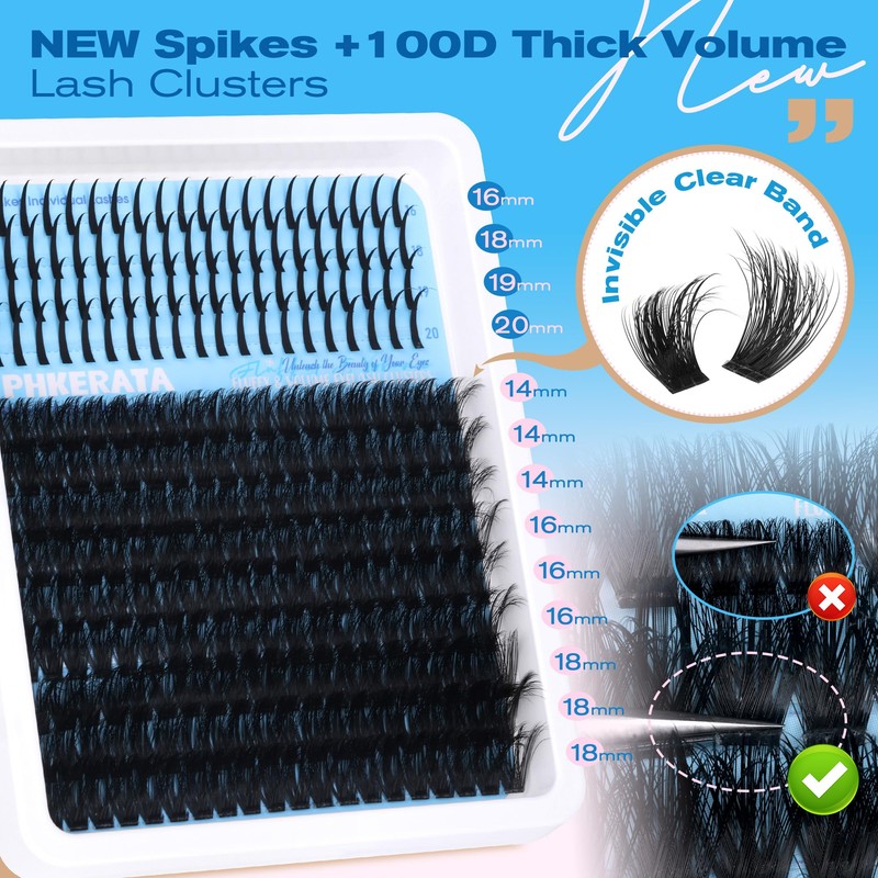 - New Spikes Lash Clusters: Our lash clusters feature spikes that seamlessly pair with 100D volume cluster lashes, creating dynamic eye-catching eyelash effects. The wispy cluster eyelash extensions let you customize your look, whether you prefer a subtle daytime lash style or a striking evening appearance, making lash clusters ideal for any event