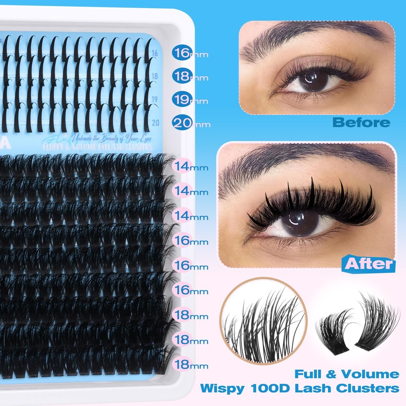 - Beginner-Friendly & Effortless Application: Designed for easy use, these lash clusters can be applied in moments. Just press lash clusters onto your natural lashes or existing 100D volume clusters—no complex techniques needed
