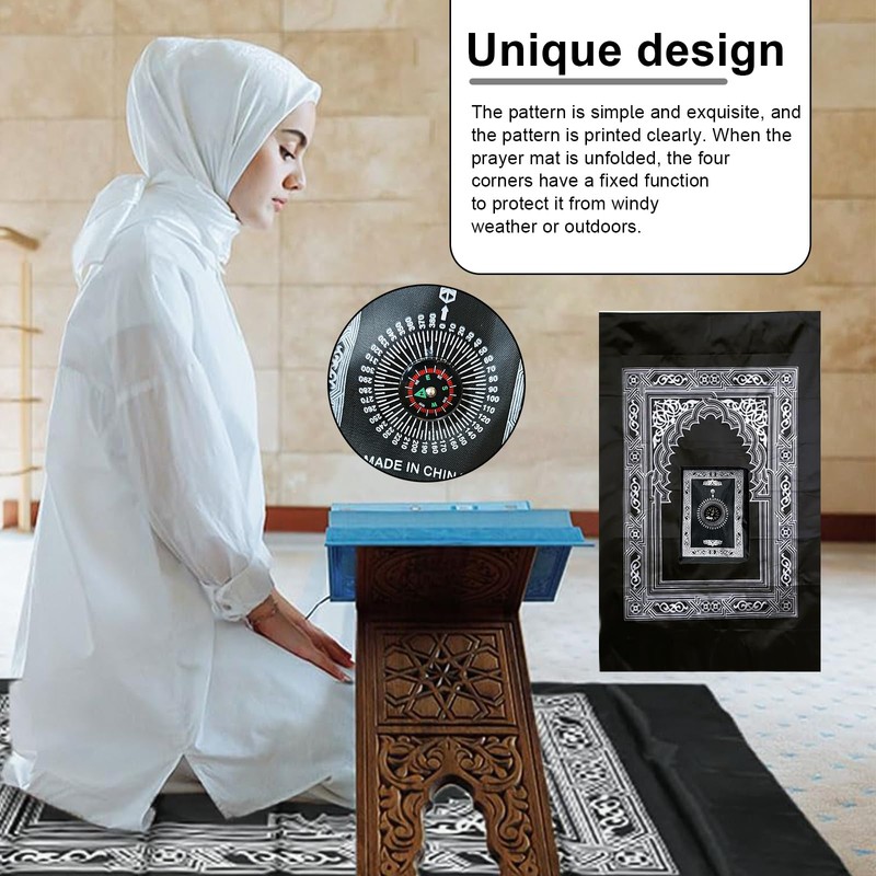 - Praktische Details: Die gebetsteppich mit kompass ist an den vier ecken mit metallgewicht versehen, um ein wegwehen durch wind zu verhindern