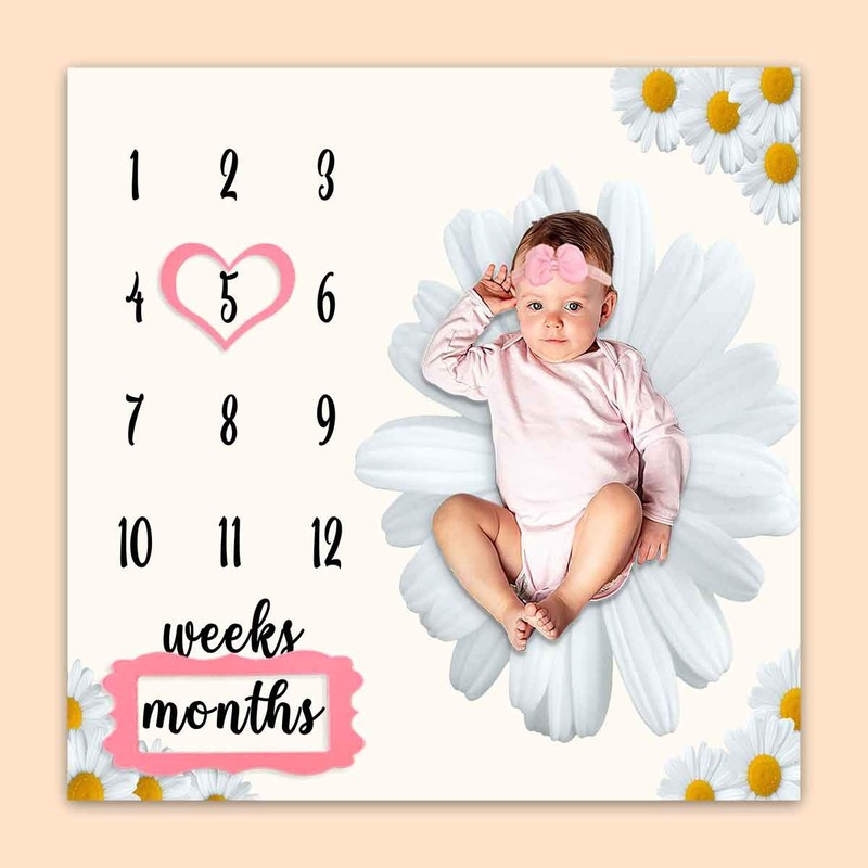 Keep track of their growth with this soft Polyester Baby Month Blanket.