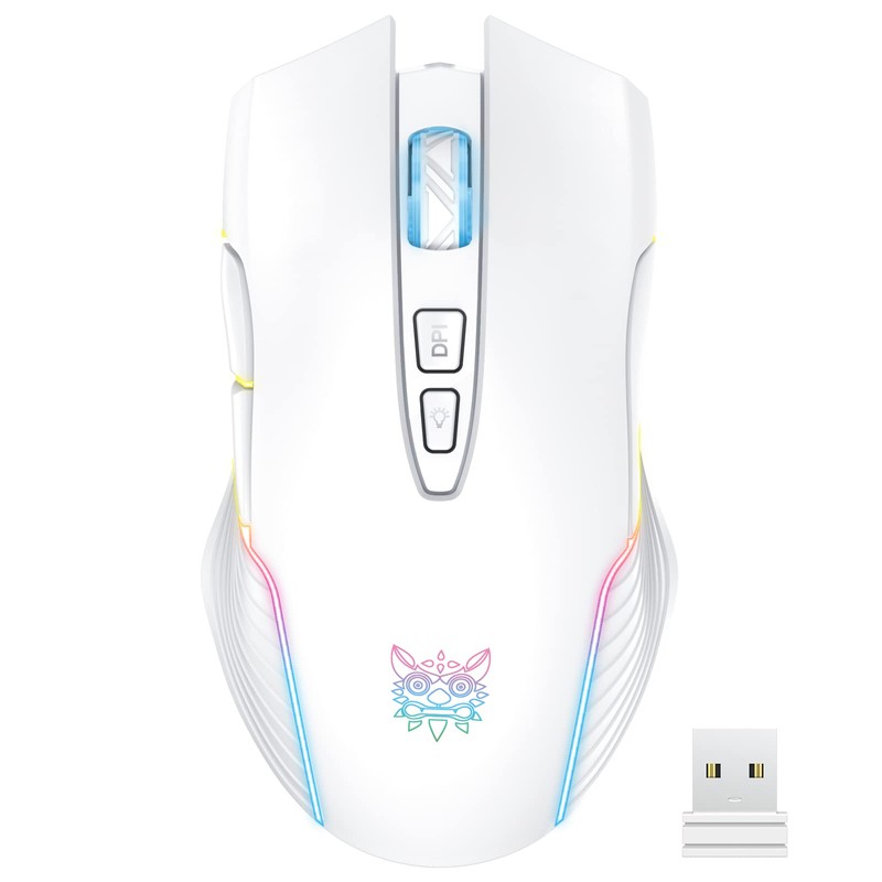 PHNIXGAM Rechargeable Wireless Gaming Mouse, Ergonomic RGB Computer Mouse with 2.4G Receiver, RGB Backlight, Adjustable DPI Up to 3600, 7 Buttons (Not Programmable) for Windows Vista Linux (White)