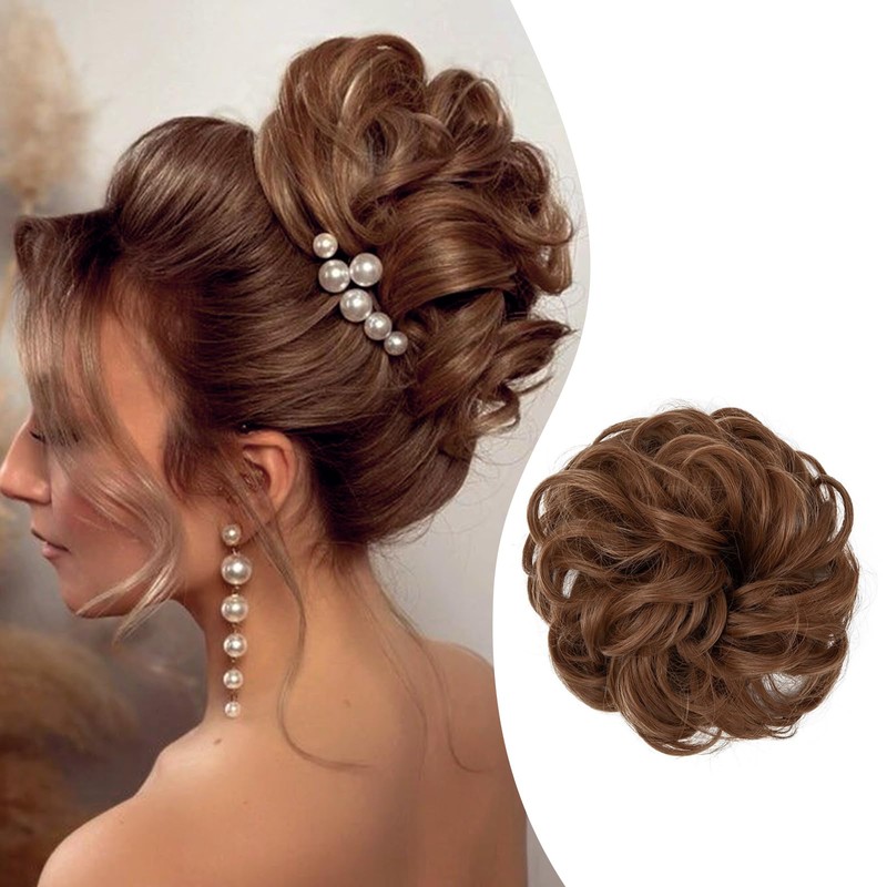 PHOCAS Curly Messy Hair Bun Hairpieces for Updos Fake Hair Space Buns Scrunchie Large Fluffy Hair Extensions for Women Daily Wedding Party Use(Light Auburn)