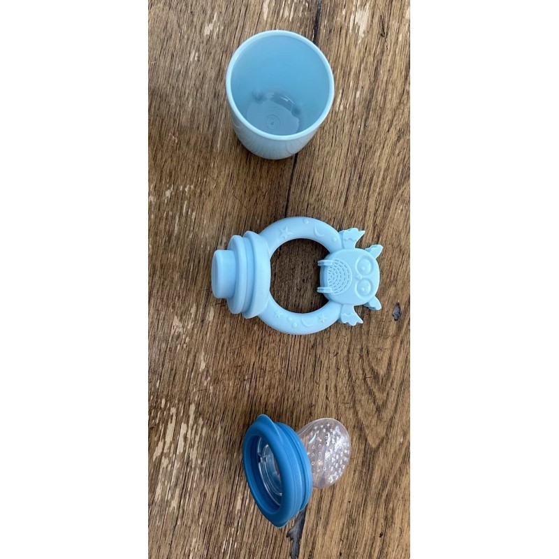 Introducing the 4Pc Phoebe & Wesley Safari Puree Teether, a must-have for your little one! This multiple-piece pacifier set features a flat top nipple made of silicone and comes in assorted colors. Perfect for babies 2 months and older, these pacifiers have a fun owl character family design and are BPA-free.