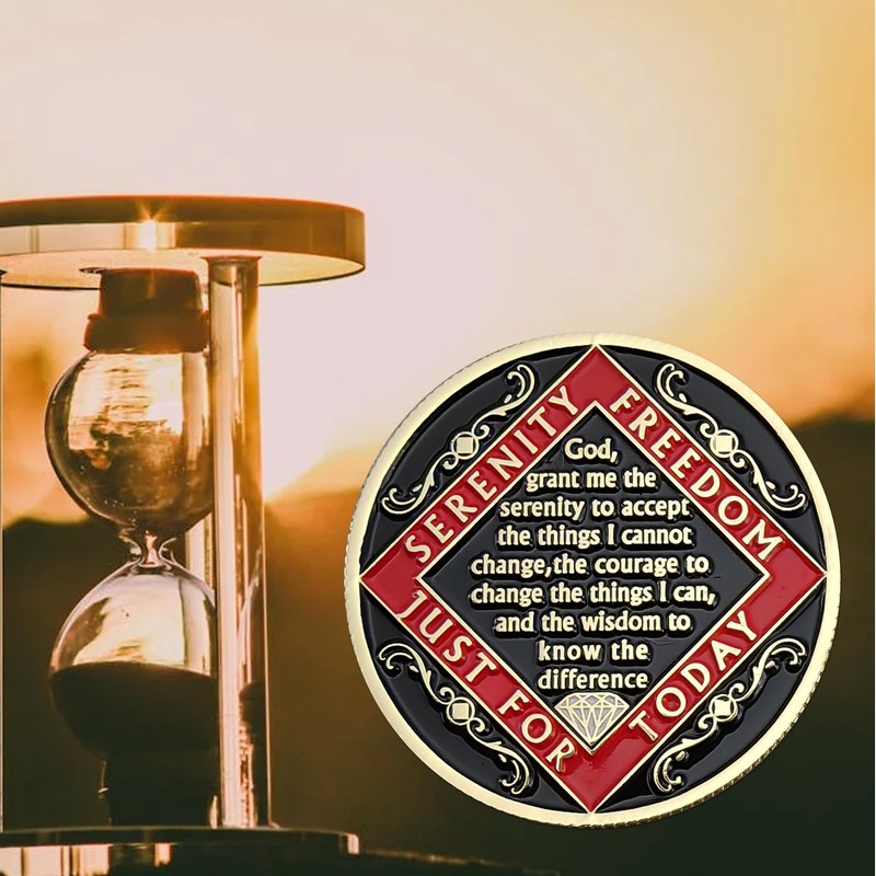 - Back Design: NA Coin engraves text: "Serenity, Freedom and Just for Today" and serenity prayers, a daily reminder of your strength and determination, helping to foster a positive mindset in recovery journey