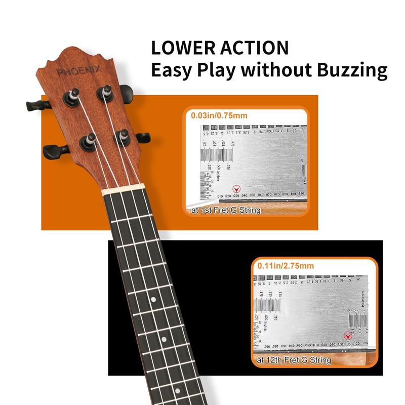 - Top Accessories: PHOENIX Ukulele equipped with NUBONE XB upper nut and lower nut for improved resonance and sustain, ensuring exceptional sound quality and tuning stability