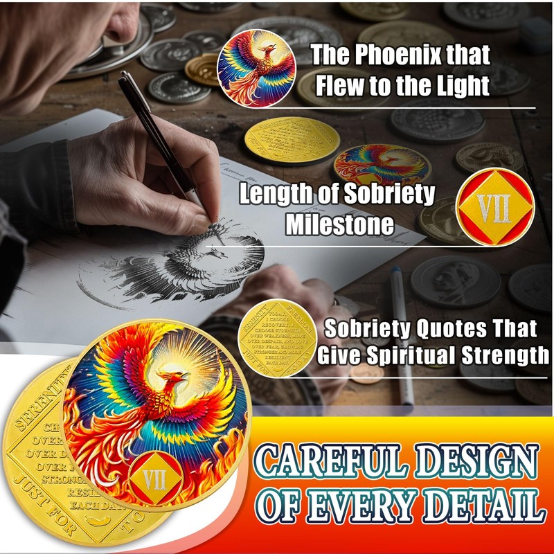 - Reborn in the Flames: This sobriety coin combines the symbolism of the phoenix and the flame, blending rebirth and growth in sobriety. It inspires us to move forward and embrace our new life after drug rehabilitation. It also provides us with daily spiritual support to help us stay calm, courageous and wise as we face life's challenges in recovery.