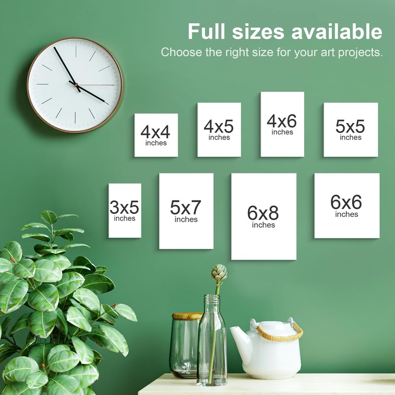 - READY TO USE - Pre-primed with 8 Oz. acid-free gesso, this art canvas set come ready-to-paint right out of the box. No preps needed. Warm tips: Canvas Panels are NOT designed for Acrylic Pouring because of the amount of paint that is required. Recommended to use for acrylic, oil, watercolor, tempera or any practicing techniques.