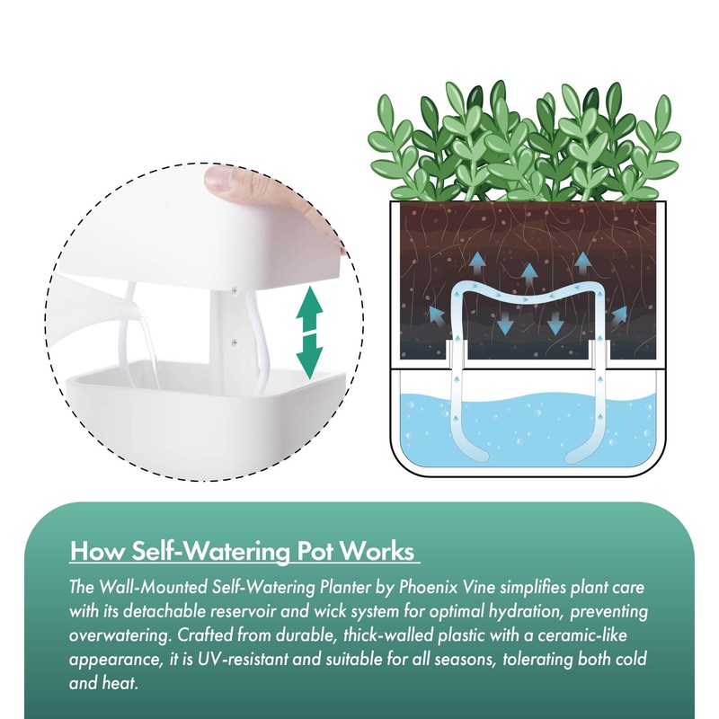 - Space-Saving Greenwall Design: Maximize your space and create a stunning green wall with this self-watering wall planter. Perfect for freeing up floor and wall space, this planter keeps your plants within easy reach and adds a vibrant touch to your home or office. Perfect for creating a vertical green wall at home or the office.