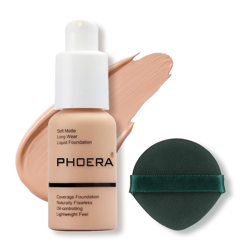 PHOERA Foundation, Full Coverage Foundation, Concealer Foundation Full Coverage Flawless Cream Smooth, Long-Lasting 30 ml PHOERA 24HR Matte Oil Control Concealer (103# Warm Peach)