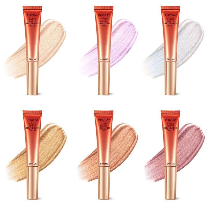 PHOFAY Highlighter Wand 15ml / 0.52 fl oz – Liquid Paraffin Moisturizing Formula, Radiant Face & Body Glow, 6 Versatile Shades with Easy Applicator Sponge (06#)