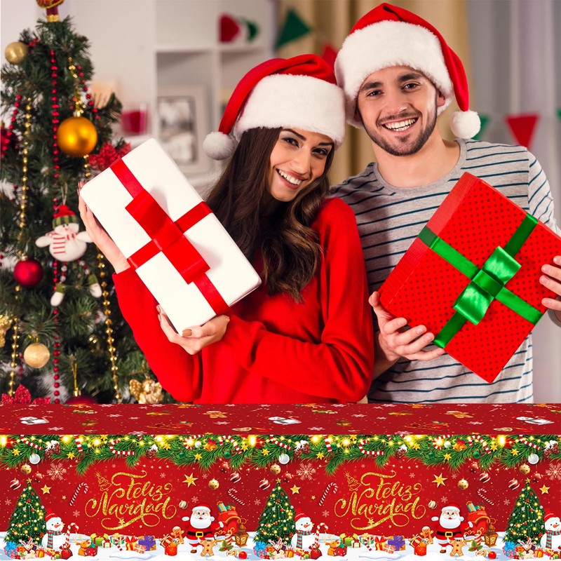 - EASY CLEAN UP: Feliz Navidad table decorations Christmas tablecloth plastic disposable are suitable for one-time use and are easy to clean up. You can roll it up and dispose of it after the party, saving you cleaning time, so you can enjoy more time with family and friends.