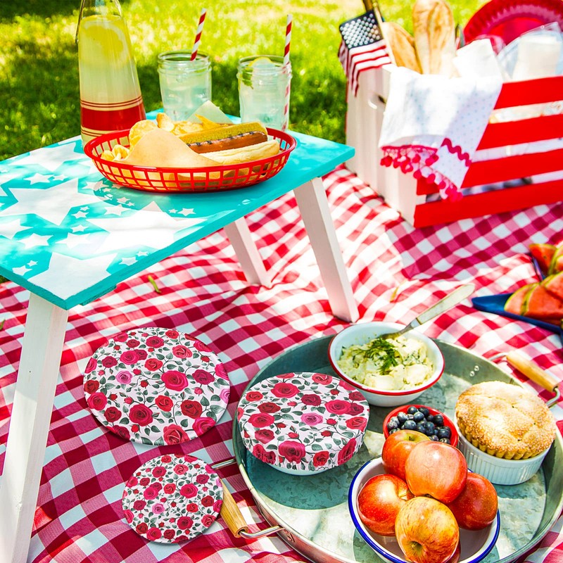- Handy and useful - Really practical and great for a picnic indoors or outdoors. Great for beach parties on vacation, corporate potluck or just for everyday use. Use fabric lids at home to cover the daily leftovers in the fridge. Use outdoors to keep your food away from insects or dust.