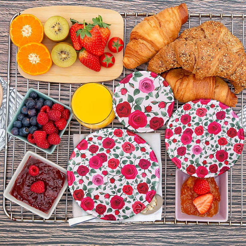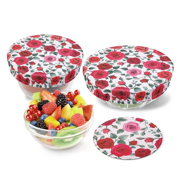 PHOGARY Food Cover Covers, Reusable Elastic Fabric Covers, Multipurpose Food Storage Covers, Pack of 3, Rose Pattern