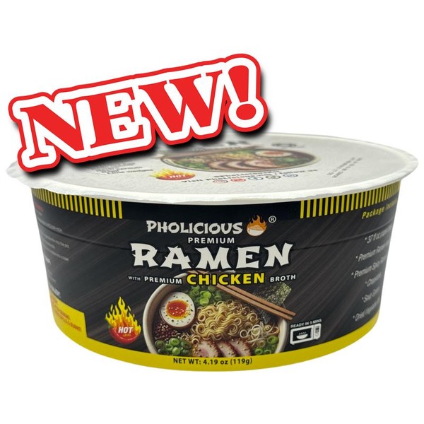 PhoLicious Spicy CHICKEN Premium Ramen, Instant, PhoLicious Brand, 4 Pack / 4.19 Ounce Bowls, Fresh Ingredients