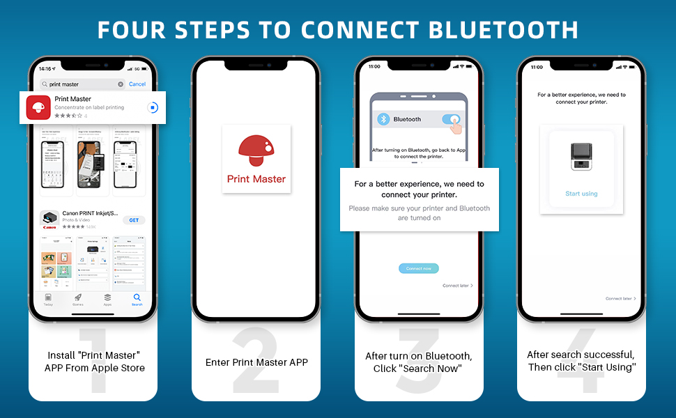 ♦​Download Print master App from App Store & Google Play > Turn on M120 Label Maker and open Phone Bluetooth > Choose printer model in app > Go and enjoy your printing ♦​M120 Label Maker is compatible with iPhone & Android phones via Bluetooth , The hand-held size and battery- powered feature make it easy to go with you everywhere. ♦​With the great compatibility, M120 label printer is able to print 20-50mm wider label, which offers you more possibilities in printing. ♦​Ideal for making clothes label, jewelry label, mailing address label, product label, money label, retail label, cable label, jar label, name tag, DIY, and more.​ |