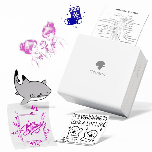 - Fashion Appearance and Portable Size: Phomemo portable pocket printer has simple stylish shape, 5 different colors to choose from. Compact size slips neatly into your shirt pocket. Weighing about 190g, it is very lightweight and can be carried around. Perfect as a Christmas gift for your colleagues, clients, family, friends, kids, partners, etc.