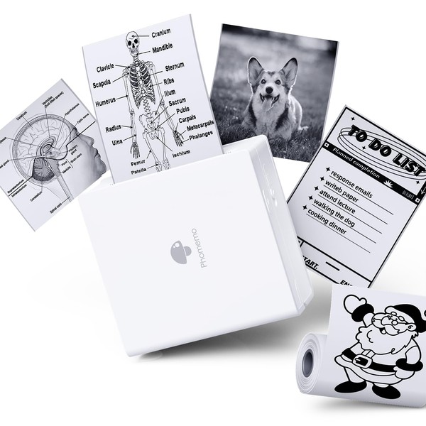 Phomemo M02 Mini Printer, Bluetooth Pocket Printer, Sticker Small Thermal Printer, Portable Printer, Photo Printer for Smartphone for Learning, Study Notes, Anatomical Charts, Photos, White