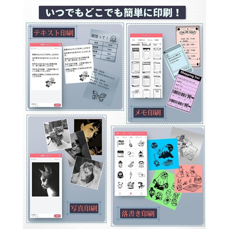 • Crisp and smooth resolution: This mini printer prints clearly and beautifully using a made-in-Japan print head with a 203 DPI resolution.It offers a new experience in being able to portably print out images and texts using thermal black and white photo printing. Great for printing snapshots and notes from meetings and classes.It can be used to print photos, memos, sticky notes, work plans, meeting notes, and more.(Please keep the remaining battery level at least 20% full.When the battery is too low it’ll effect printing.)