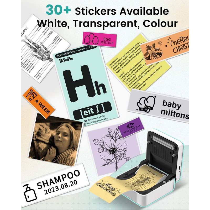 • [Includes Thermal Printer] - No ink or toner required, saves costs. Recommended for use with Phomemo printing paper.