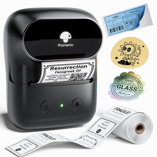 Phomemo M108 Bluetooth Label Printer, Label Maker Machine for Phone and Windows/Mac(USB), Thermal Label Printer for Small Business, Home, Kitchen, Office, Barcode, Address, with 1 Roll 40x30mm Label