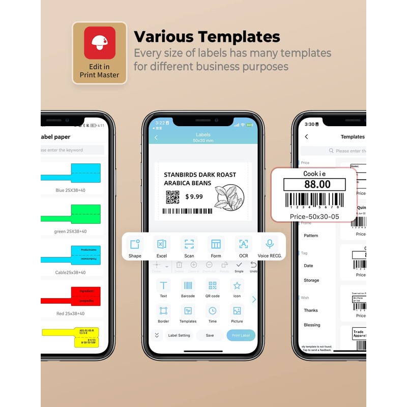 - 【Simple but Powerful App】Connect via Bluetooth, edit and set print on your phone. Use Print Master app, it provides all free ready-to-use label templates for all purposes above to boost your efficiency. You can also set up and save your own templates. 30+ fonts, 500+ emojis, 40+ borders are provided for custom label designs.