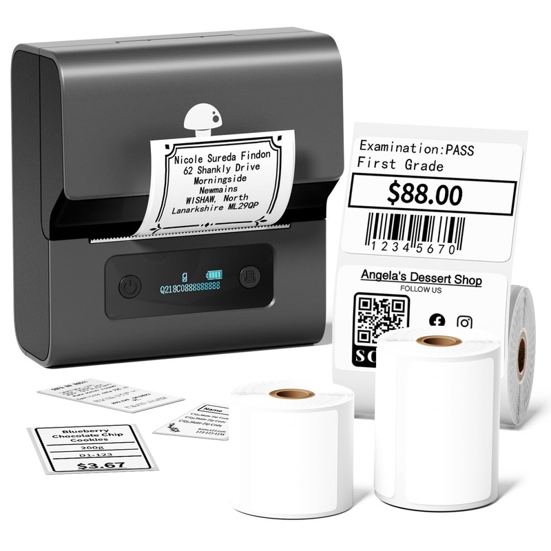 Phomemo M221 Label Printer with 3 Label Rolls - Thermal Bluetooth Label Printer, Labelling Device, Label Printer, for Barcode, Retail, Office, Small Business, for Android & iOS & PC, Grey
