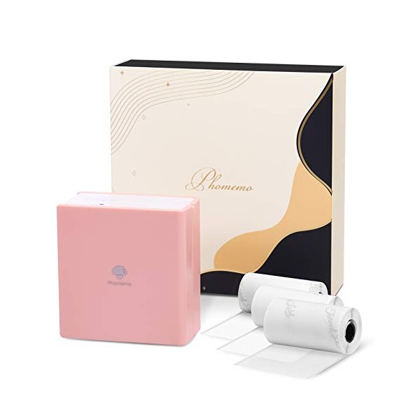 - √ What in the Package- 1 Phomemo Pink M02 Bluetooth Pocket Printer, 1pcs 53mm Black on White, Transparent, Semi-transparent Sticker Paper. 1 Micro USB wire.