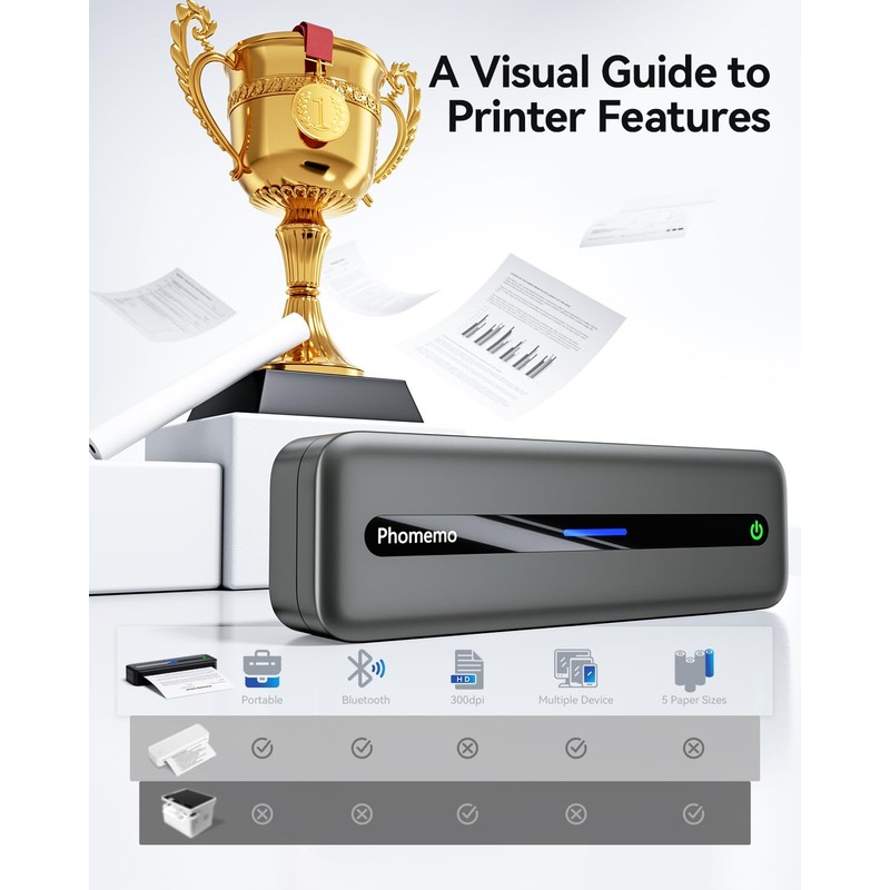 Phomemo Phomemo Portbale Printers Wireless for Travel, M832 Bluetooth Thermal Printer 8.5' x 11', Comaptible with Android & iOS Phone and Laptop, Small Mobile Printer for Office School Home Use