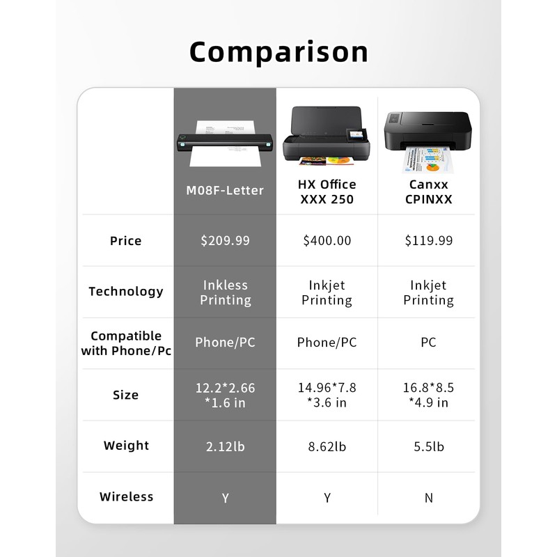 - Inkless Printing: Small Printer use thermal technology - don't require ink, toner, or ribbons, no ink-related blockages and cleaning issues. And instead you only need to replace the thermal paper and you're good to go, each thermal paper costs only $0.12, cheaper than traditional ink cartridges + paper.