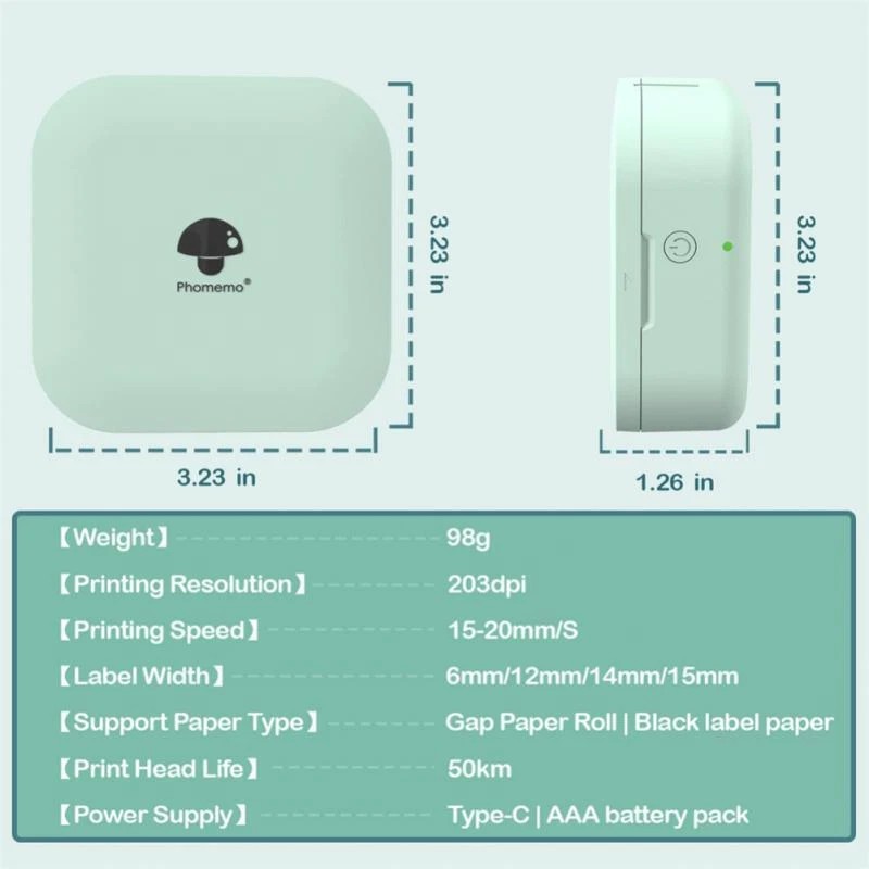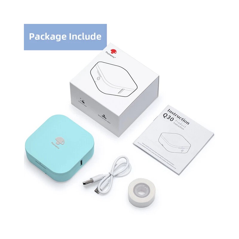 Phomemo Q30 Pocket Thermal Label Printer Bluetooth Wireless Mini Phone Printer - Green Printer+1 Roll Paper Sticker