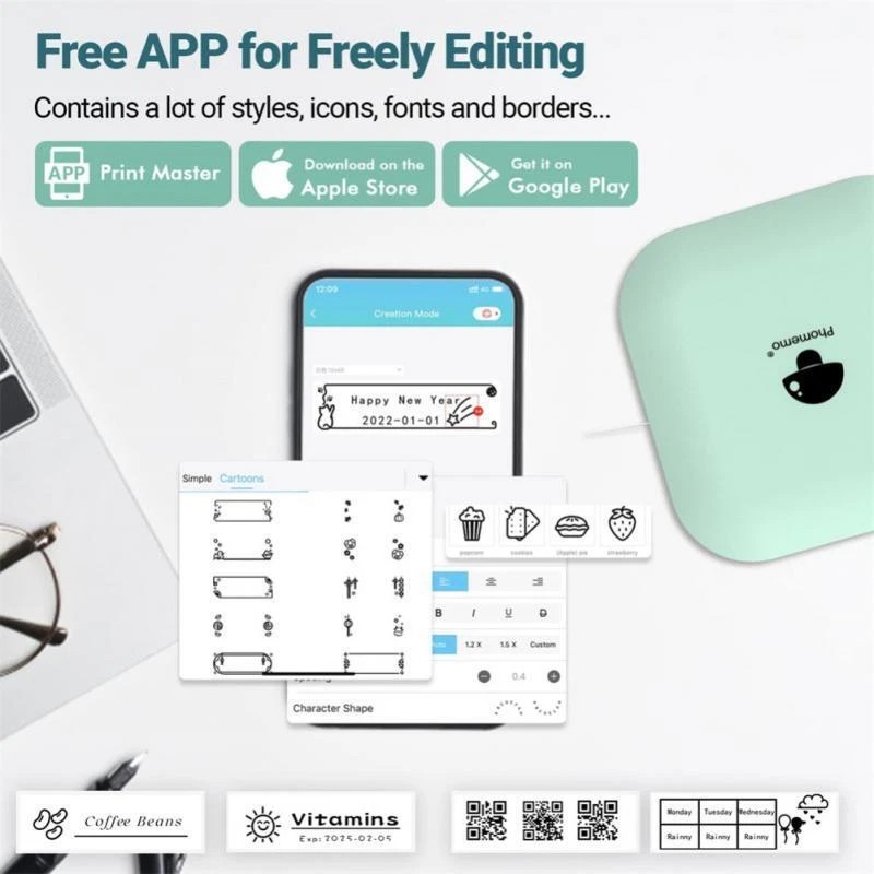 [Multiple Creative Templates&Functions] This APP of the label-maker provides a variety of free features and templates.Including various Texts,Icons,Tables,QR codes,Symbols,Barcodes,Time,and more.More conveniently, you can choose excel import, scanning,voice recognition,etc.(Support continuous label tape or fixed in length labels.)