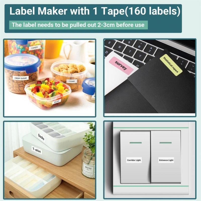[High-quality Printing] This small labelmaker offers exceptional print quality,this handheld lable maker prints fast and clearly with a thermal print head and 203 DPI which means you can enjoy higher print label technology.Label tape is waterproof,oilproof,anti-scratch,tear off without leaving a sticky residue.