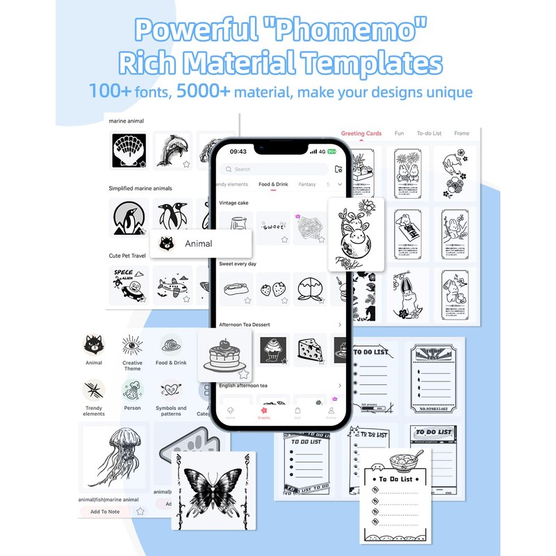 - Mini printer for smartphones and tablets: With advanced thermal printing technology, the sticker printer does not require ink, saving you time and effort. The mini mobile printer is compatible with iOS and Android devices. The mini sticker printer can easily connect to your phone via Bluetooth via the "Phomemo" app, so you can effortlessly print your desired photos and texts