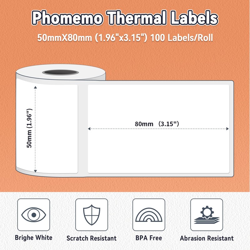- Label Features- Phomemo thermal labels are tough and long-lasting, BPA-free, waterproof, oil-proof, scratch-proof, easy to store, and cost-effective.