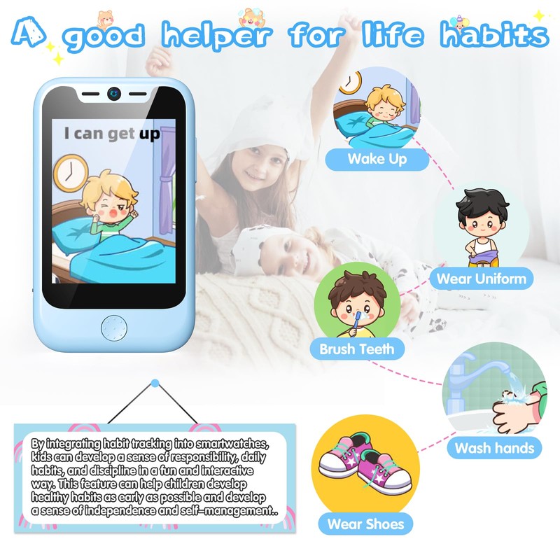 - 【Comfortable and Durable Design】Environmentally friendly silicone material that is soft, comfortable, and leaves no trace.The smart kids phone features a high-definition touch screen that provides children with a clear, interactive display so they can navigate various functions and features.
