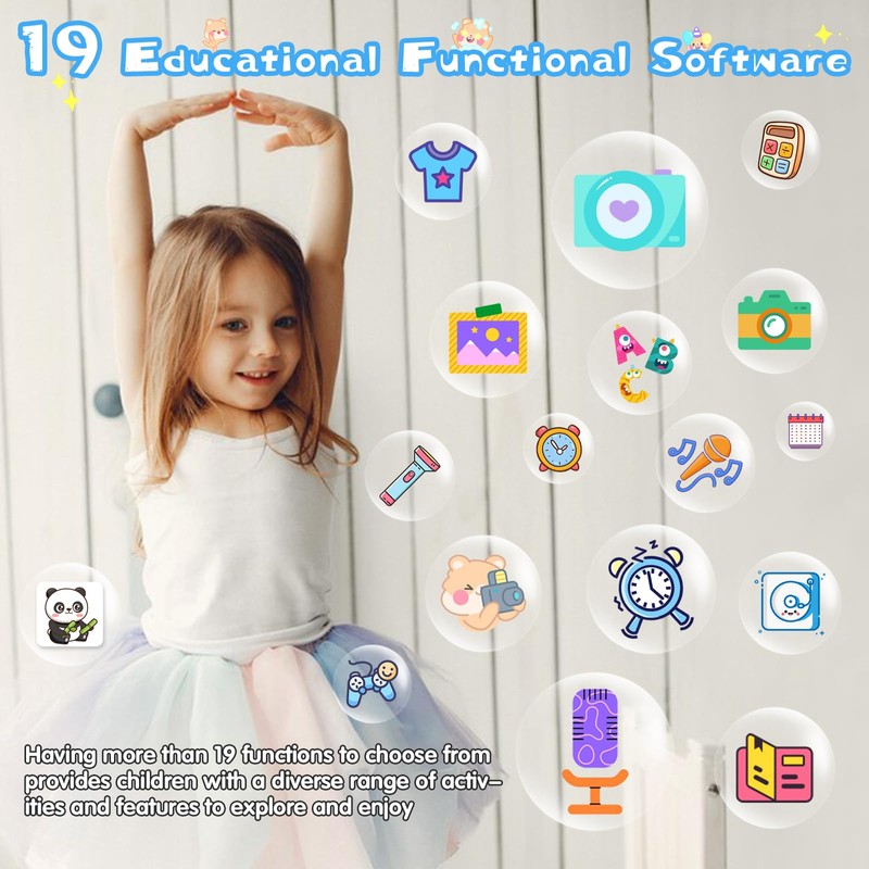 - 【Kids Photo Phone】Dual front and rear cameras, fun stickers for customization, high-quality sound output, card, 10 engaging fairy tales, and large storage for music and learning audios. Fosters creativity, photography skills, imagination, and provides enjoyable audio content for entertainment and learning purposes.