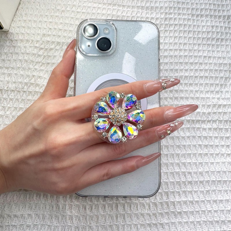 Phone Grip Compatible with Magsafe - Crystal Diamond Gem Series Multi Functional Magnetic Phone Grip with Expanding Kickstand Include Magnetic Adapter Ring (Iridescent)