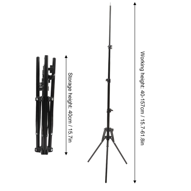 1、Firm Bracket: The bracket is fixed with rivets to prevent the screws from falling off, and the folded three prong structure is more stable and the support is firmer, which increases the stability of the product and has a longer service life. 2、Standard 1/4 Screw Interface: Increases the expandability of the light stand, and can install video lights, live lights, PTZs, cameras, mobile phone clips and other equipment. 3、Rubber Anti Skid Pad: The bottom rubber anti skid pad is designed, so that the light stand can be stably supported on glossy ground. 4、High Performance: Reinforced with high quality plastic parts, stable locking, cold and heat resistant, not easy to crack, deform, and durable. 5、Portable: Folding mobile phone holder, storage size 40CM, compact and easy to store.