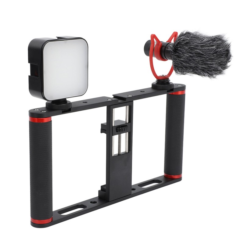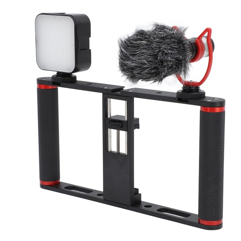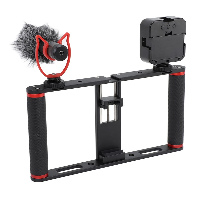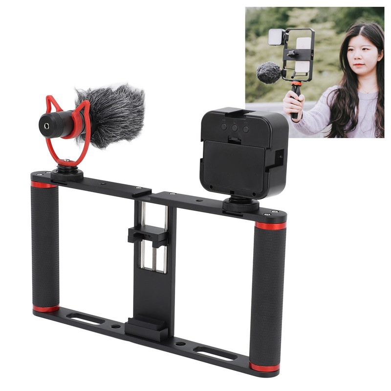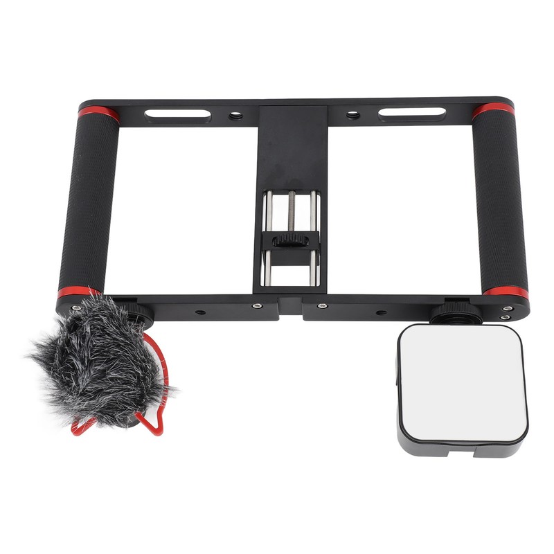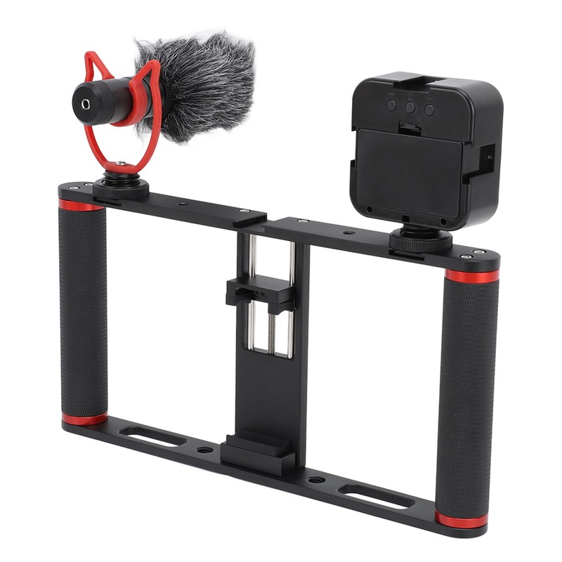 Phone Video Rig Kit Multifunction Lightweight Mobile Phone Vlogging Cage Microphone Kit with Fill Light for Live Stream