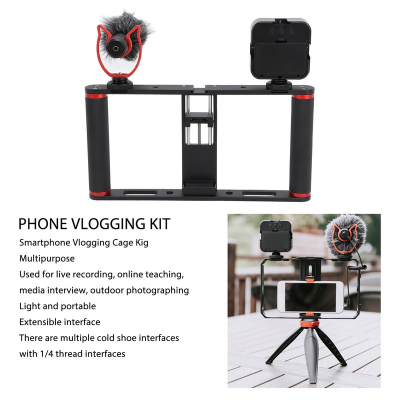 Phone Video Rig Kit Multifunction Lightweight Mobile Phone Vlogging Cage Micr...