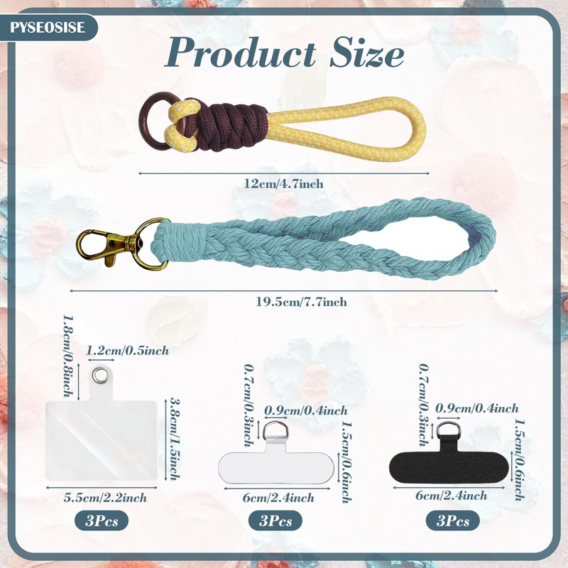 - ⭐【Premium Material】These phone wrist straps are woven from cotton rope, soft, wear-resistant and long-lasting. And the phone patches are made of PU leather and plastic, lightweight and portable.