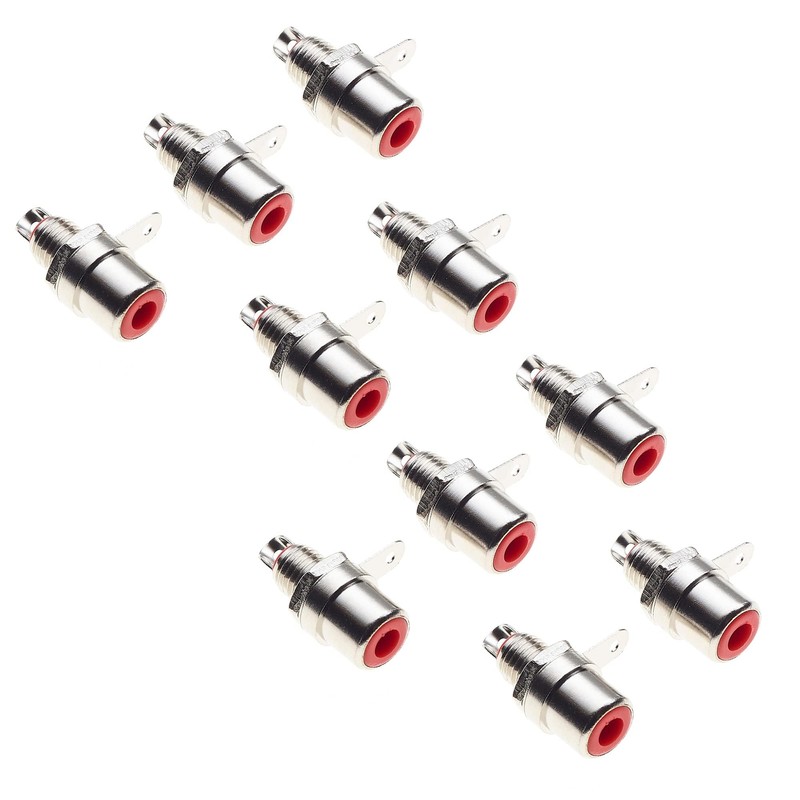 Phono Socket Chassis, Red - RCA Chassis Panel Mount Female Adapter Nickel Plated Connector, For Amplifier Audio Terminal Plug - Pack Of 10